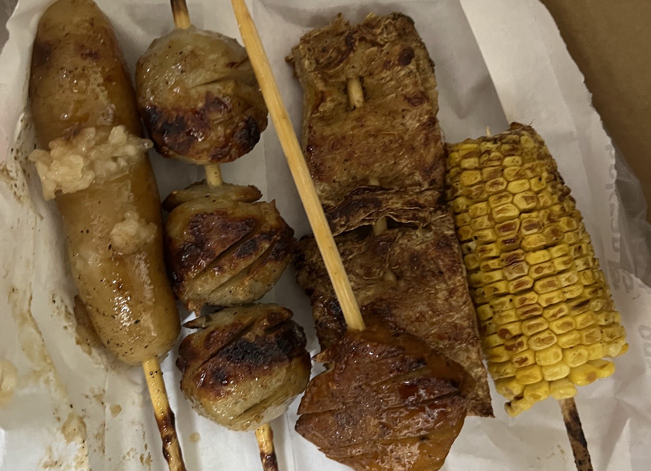 烤肉肉質不會乾柴不會硬很好吃❤️唯一小困難 就是黏在竹籤上有點難拔下來?
