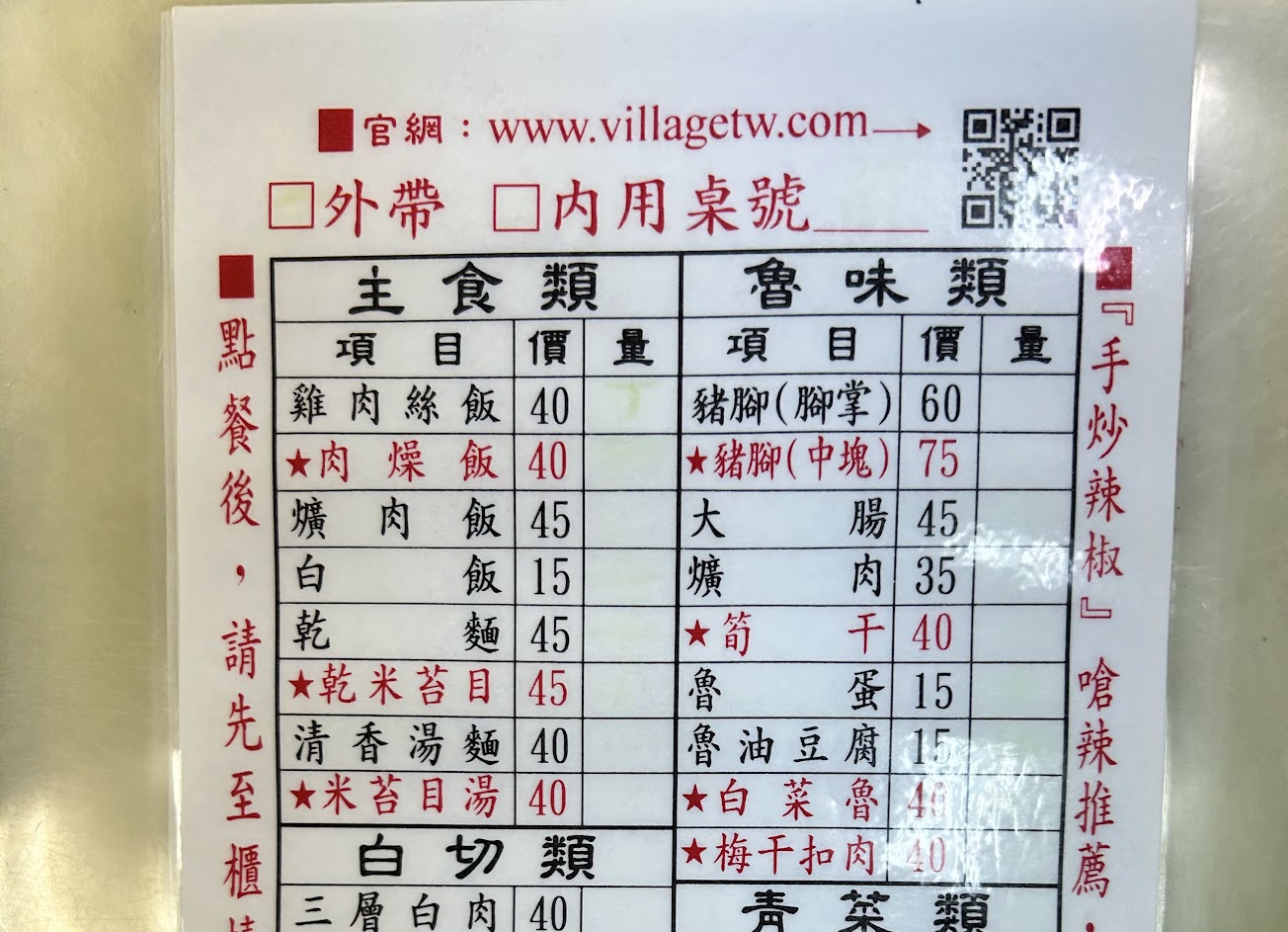 價位平易,産品眾多,小菜有魯,有白切,還有燙青菜,主食有飯有麵,湯類也很多種,停車較不易