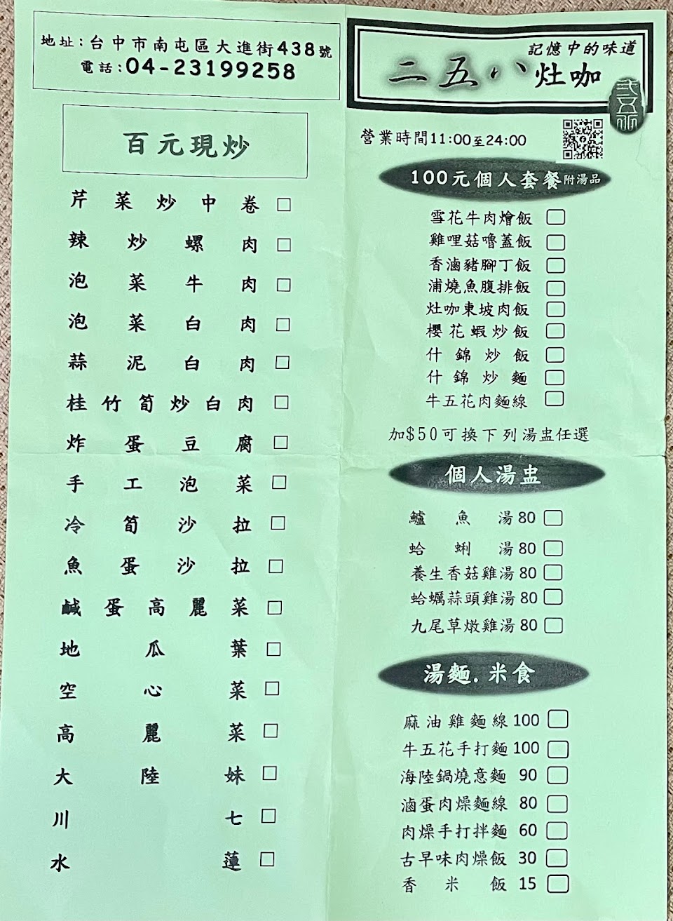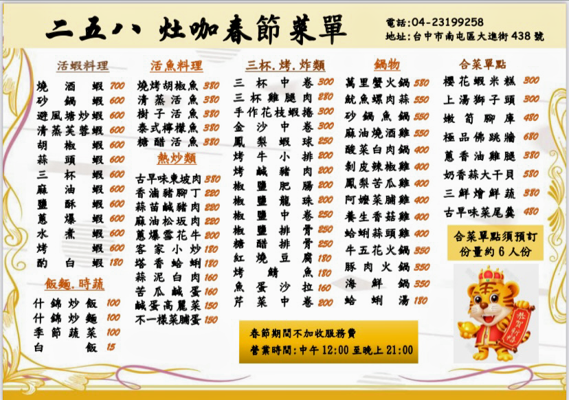 2024最新在地推薦餐廳的菜單_二五八灶咖的菜單、圖片