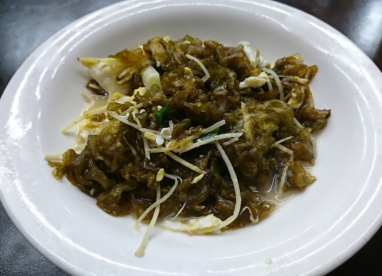剝皮辣椒雞 = 湯頭有放小魚乾跟金針菇,湯甜清爽有辣度;最讓人滿意的是,雞肉是烏骨雞!而且雞肉簡直鮮嫩到一絕,連皮都Q彈動人,最滿意的一道,6分。