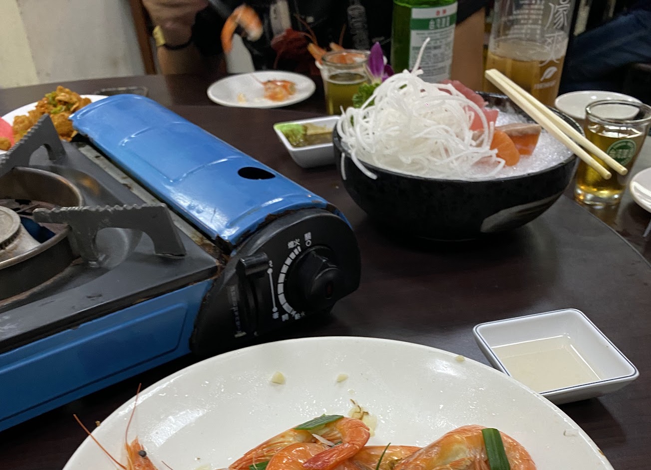 生意相當好的海產現炒店,所以食材都很新鮮,食物的調味也偏清淡,最喜歡清蒸魚(紅條)?的調味、魚肉也很細致又Q,清燙鮮蝦幾乎桌桌必點,蝦肉鮮甜有彈性。覺得可惜的是火焰牛肉,聽說是招牌,但是我咬不大動?。