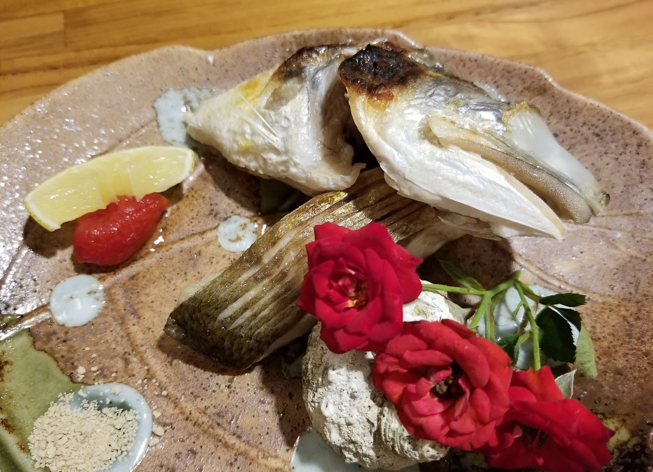 當天預約的座位是位於吧台板前,可以欣賞師傅用心地料理食材,處理炙燒時可以聞到撲鼻而來的香氣。店面雖小但能感受到老闆的用心,而且服務生們也都挺細心周到。擺盤十分漂亮,看了心情也好好的,用餐過程愉快。