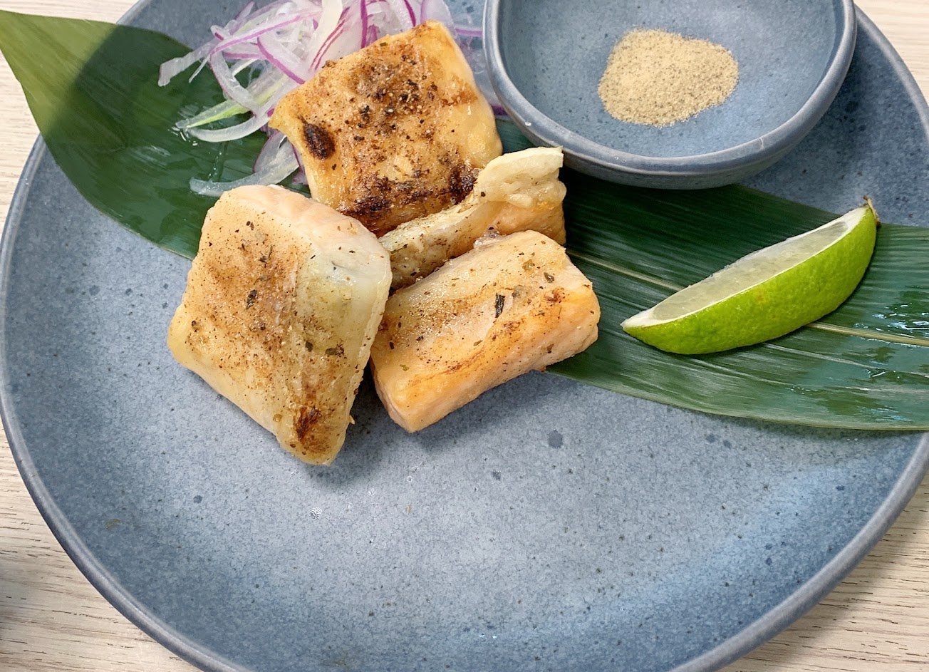單點:燒烤鮭魚肚、鹽烤節瓜