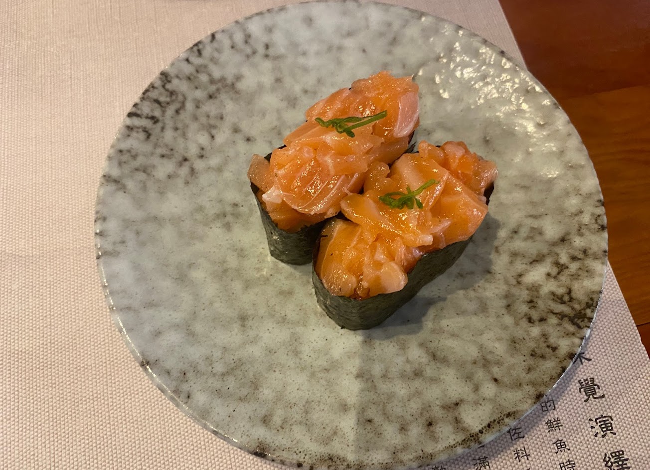 龍蝦沙拉軍艦和炙燒鮭魚握壽司較普通。