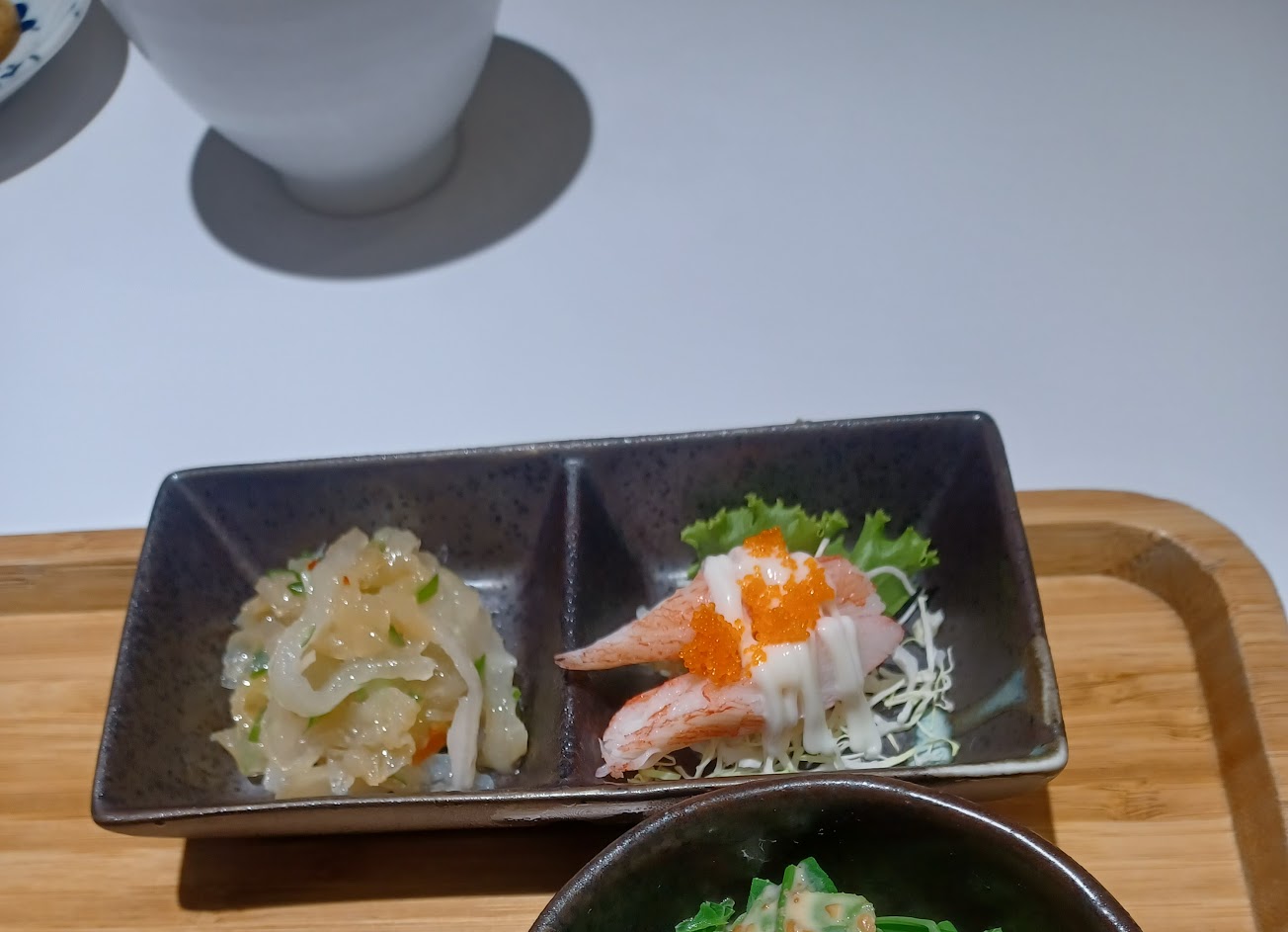 很有誠意的日式簡餐,泡菜牛肉丼加大以後,大到吃不完,婧魚定食處理的也很好,小朋友一口接一口。重點是免費的味增湯居然裡面還有鮭魚,一旁的飲料除了冷熱外,居然還有桂圓紅棗茶可以選。帶小朋友來除了只有一張兒童椅,沒有兒童餐具,比較不便外,其他都很棒