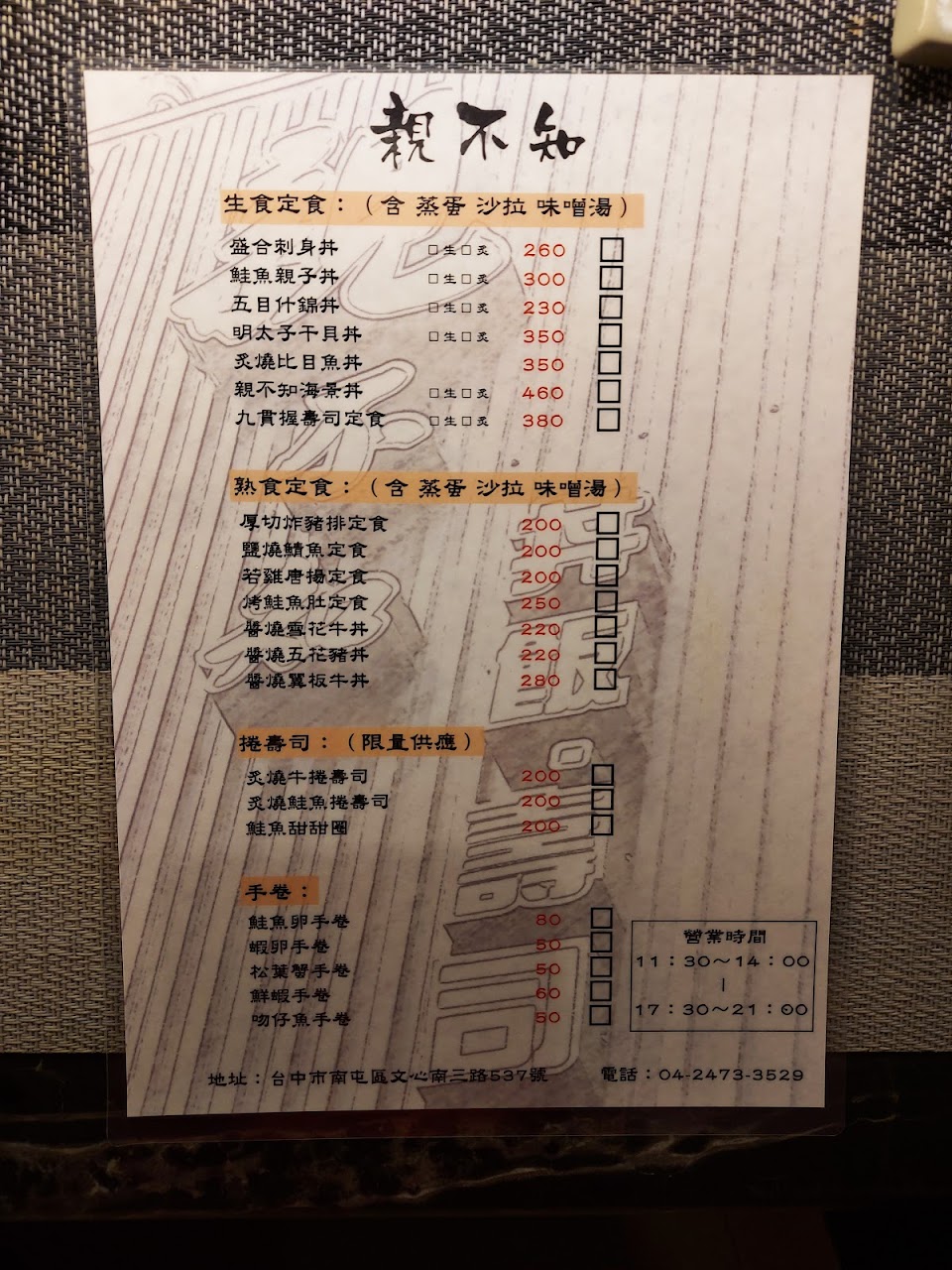 2024最新在地推薦餐廳的菜單_親不知丼飯壽司的菜單、圖片