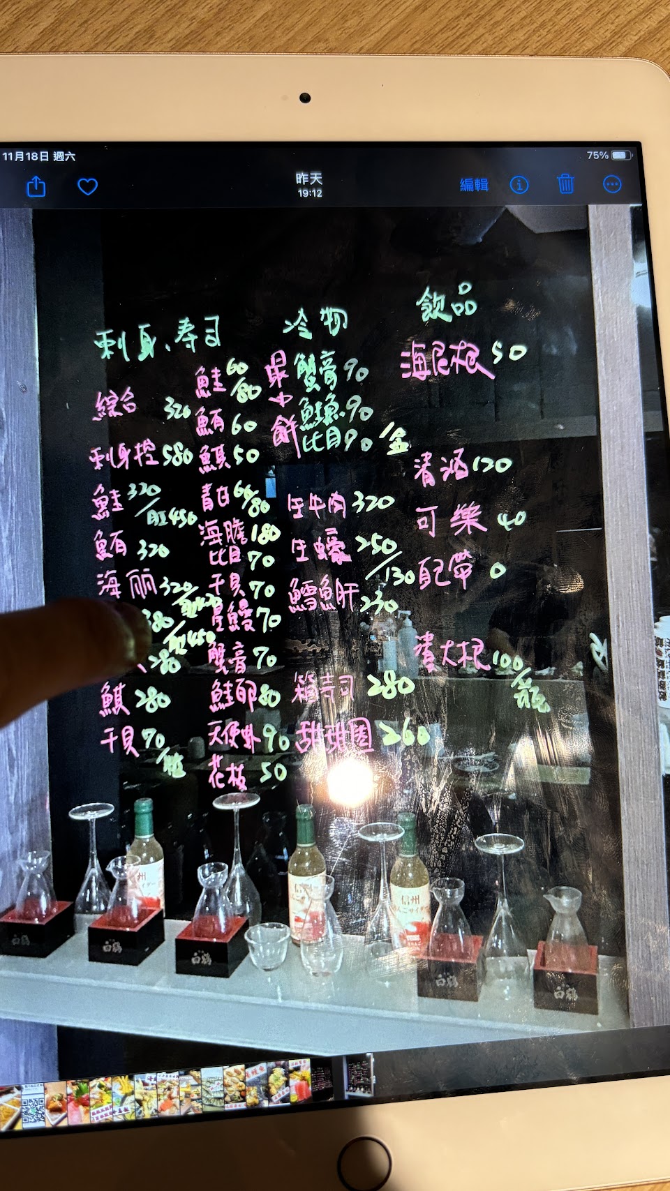 菜單是看店家平板的相簿圖片,FB上有相同的餐點圖片供參考