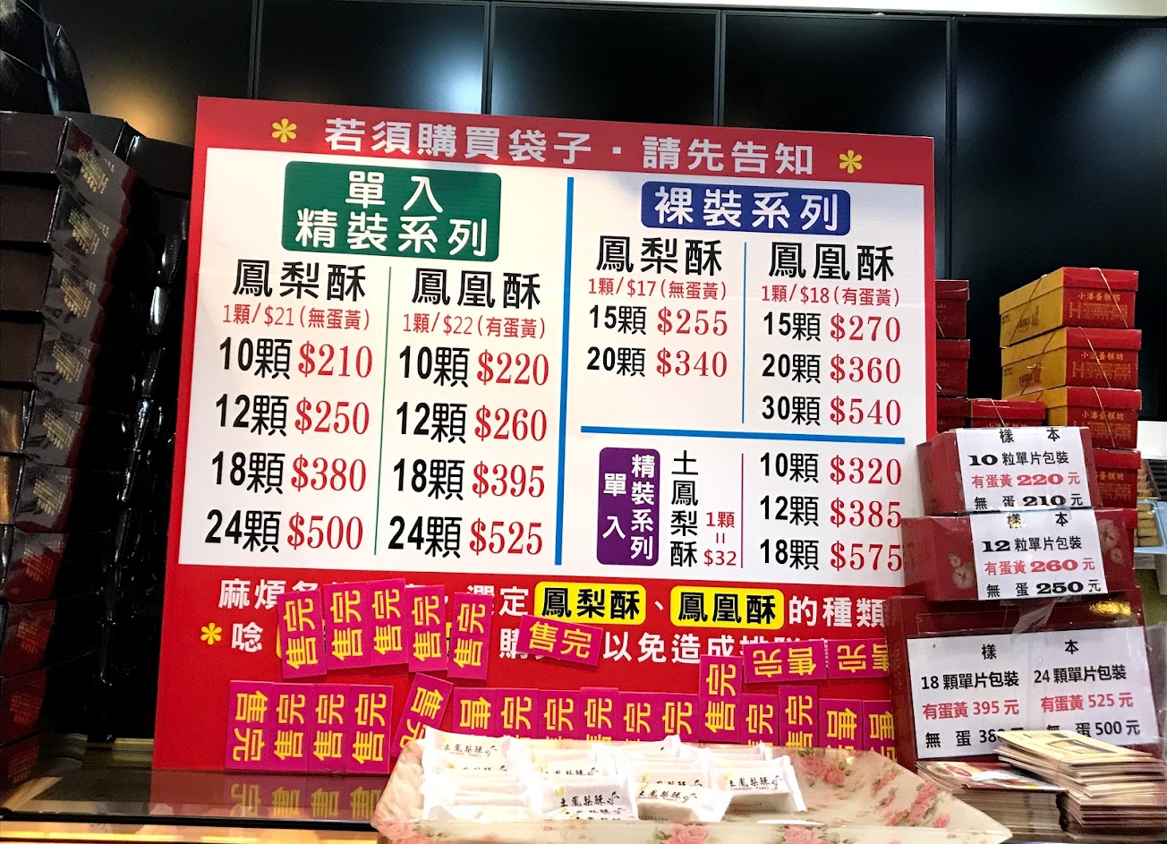 小潘蛋糕可以說是遠近馳名,也是旅人到新北板橋必到的採買名店,無論是鳳梨酥、鳳凰酥、蛋塔及千層蛋糕都很好吃,且價格也不會很貴,難得來一趟,當然也要滿載而歸。