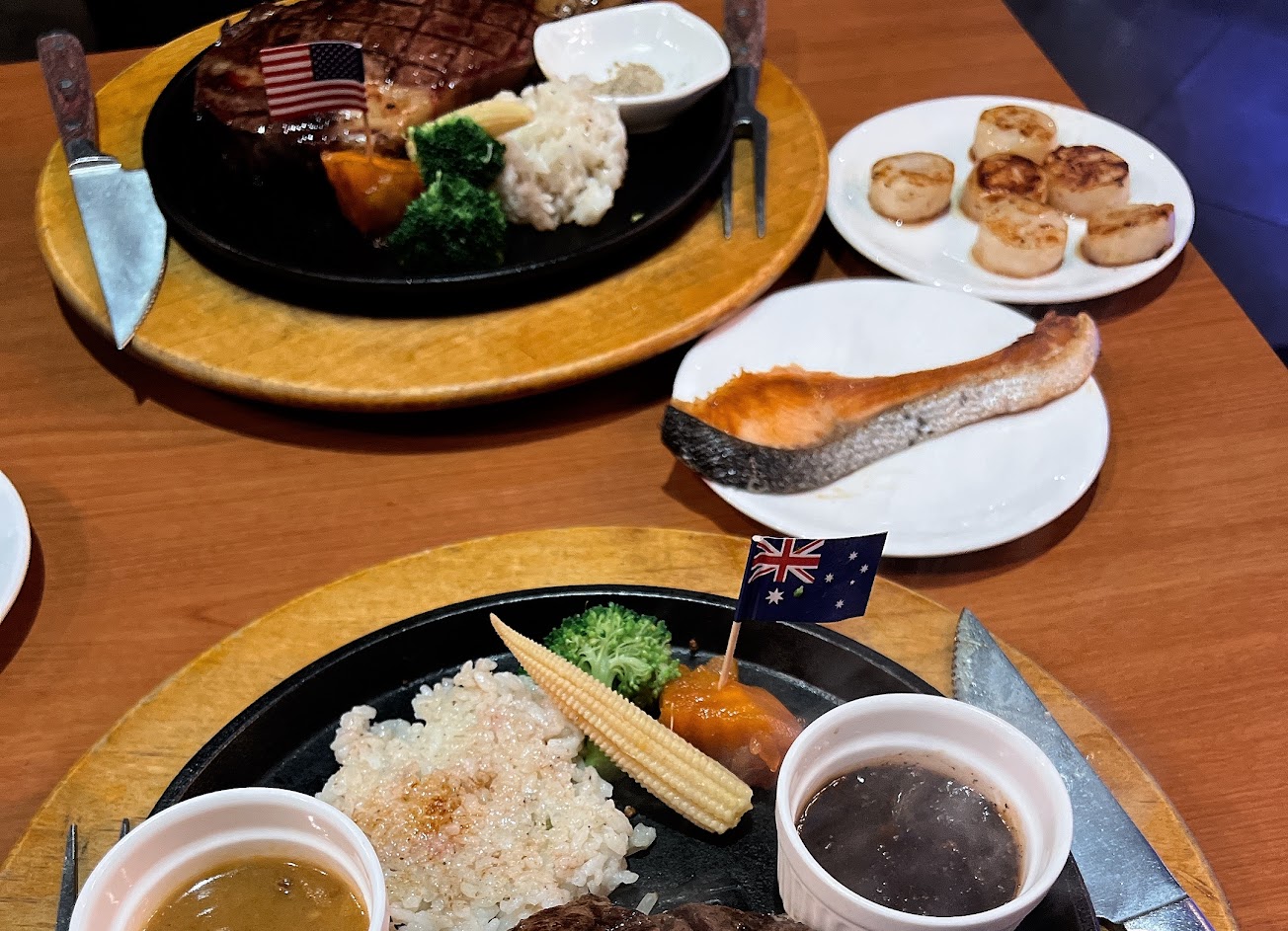 牛排香嫩可口、薯條好吃、湯品、水果、飲料豐富多樣,服務人員親切和藹。