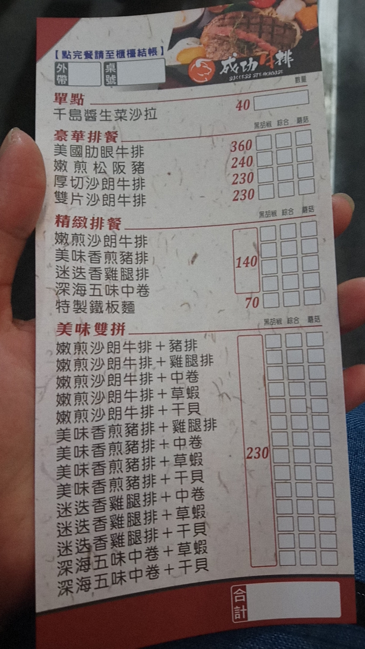 2024最新在地推薦餐廳的菜單_成功牛排 嶺東店的菜單、圖片