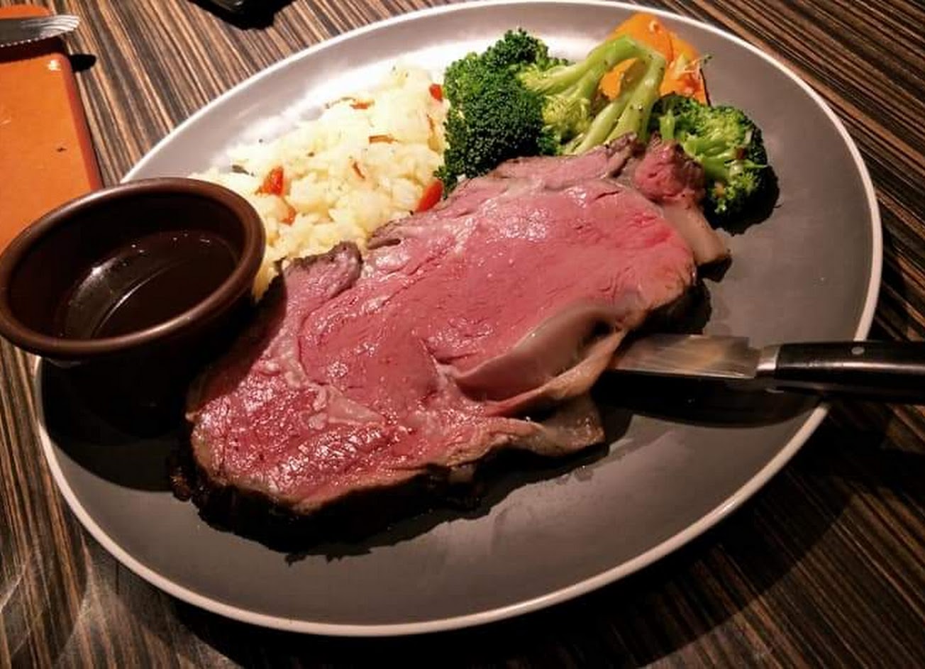 慢烤頂級肋眼牛排用鐵板香煎五分熟非常好吃,我自己覺得是比原味的更好吃。部分店員的服務水準能再加強就更好了