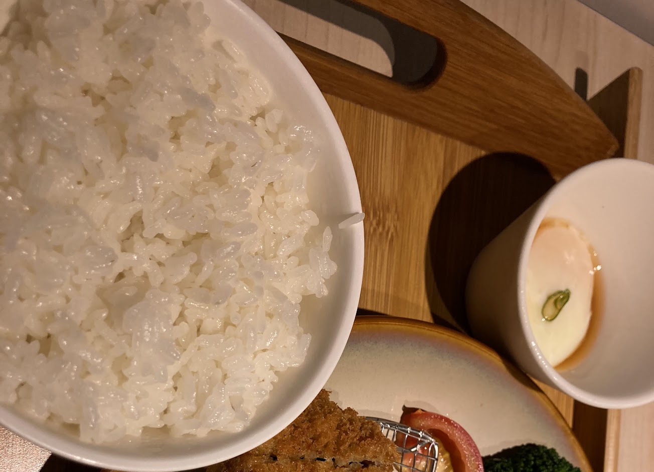 小菜只有筍子,筍子吃起來像是玻璃罐的配粥筍干,白飯很大一碗;配菜還能選擇薯條或沙拉,但我們都吃高麗菜絲,要添加都要再加50元,這點比較不大氣;蛤蜊湯很好喝,海帶燉得很軟,湯頭很鮮甜;蒸蛋就很普通…..,整體來說炸豬排比不上專門店,但是性價比還行…!!