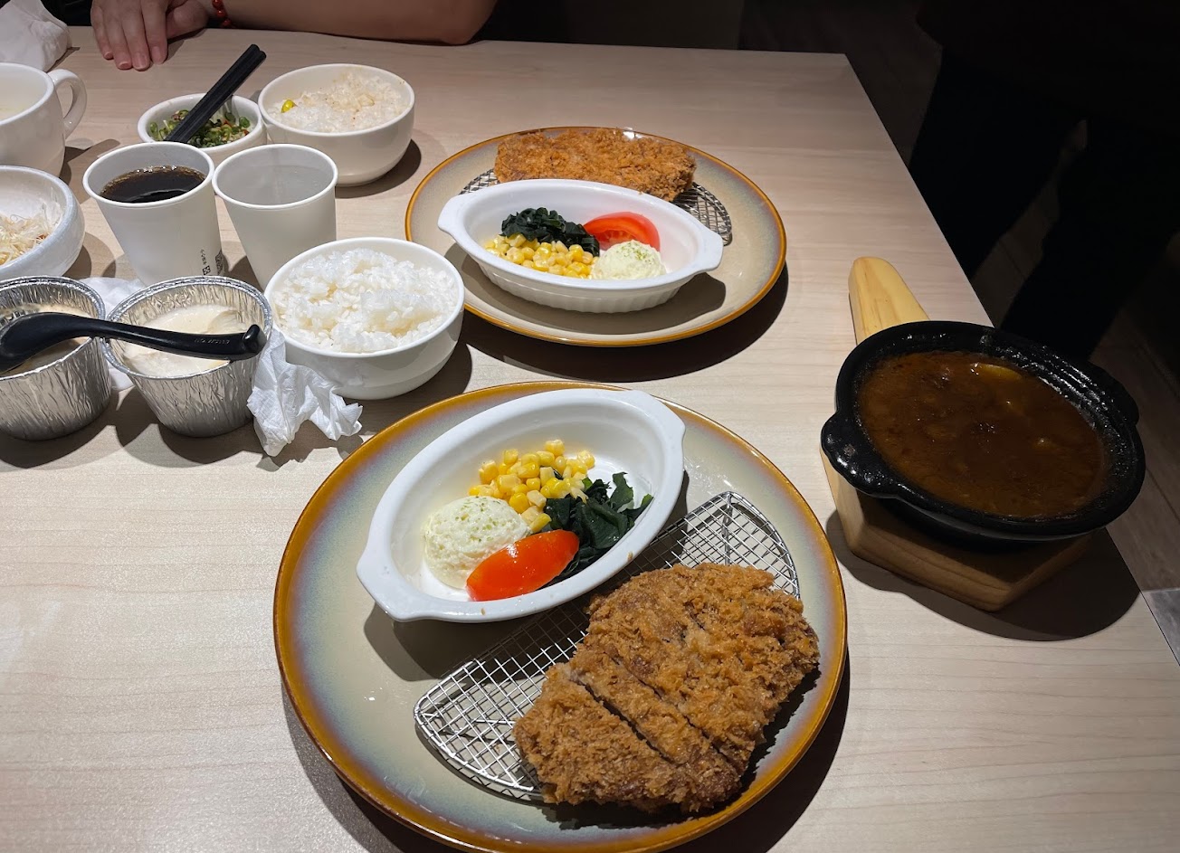 去年忘了何時,小菜湯品飲品自助吃到飽,桌上點餐機超方便,炸豬排和麵衣是1:1,吃的到很脆的口感,豬排也很後,相對的炸牛排感覺是3:7,牛排很薄,吃到的都是餅乾有點可惜,一樓座位區很多,服務人員服務也很好!可以偶爾帶朋友來吃!
