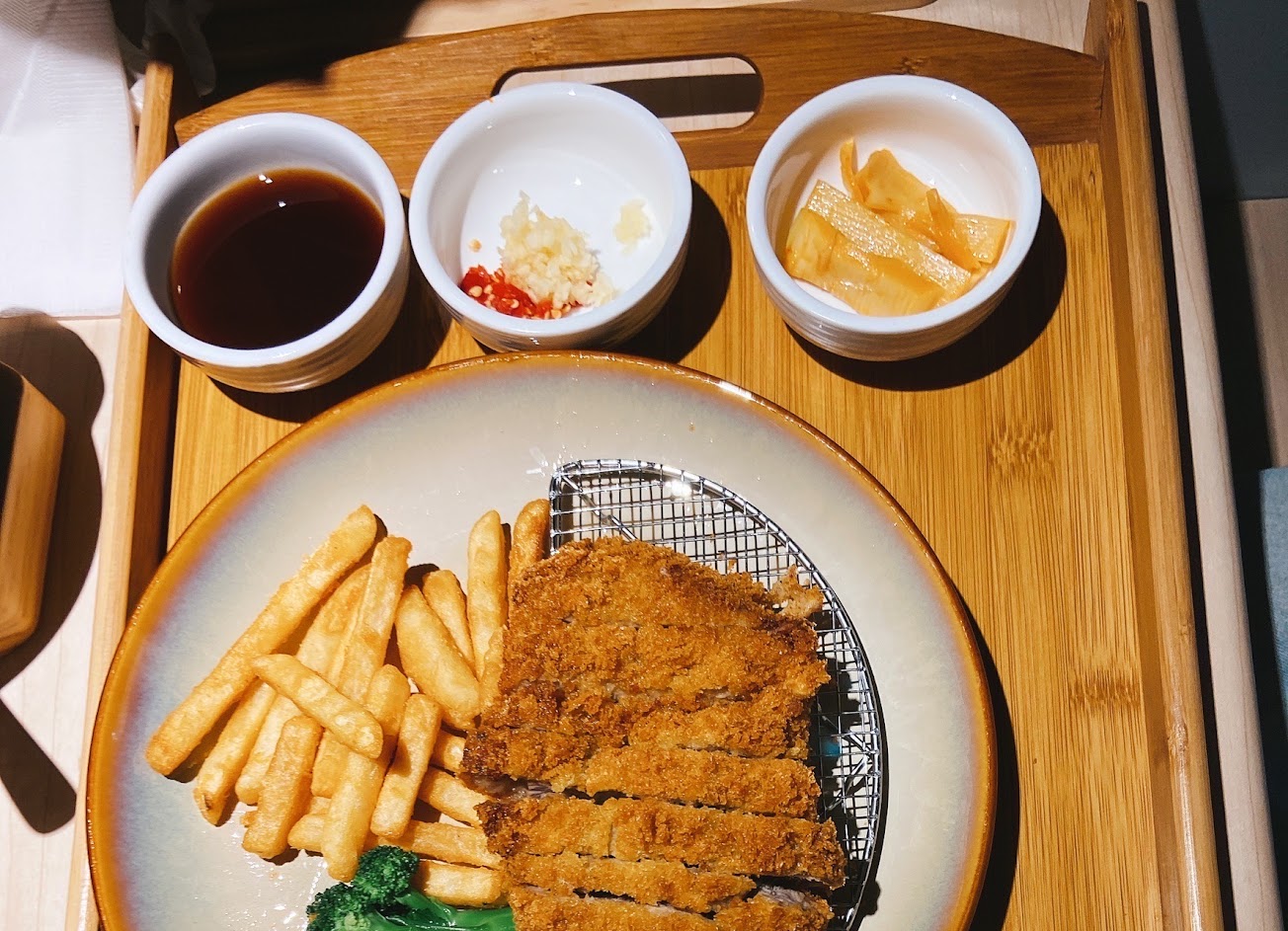 介紹人員不會介紹,說每個人低消220已經足了3個人低消220結果說還要再訂東西,我們說是不太多那麼多東西,然後他就說你小東西也可以,結果東西都來了說要每個人一份套餐,一開始就說每個人一份套餐就好了啊,害我們點了那麼多三人吃了1000多,樹太老,也是低消$250足了就好了,還有合作的停車場,飯又好吃菜湯飲料也是免費吃喝到飽,他們說的越光米好像一般的米,我們三人825以加10%吃的,很高興又不用停車費,吃的很滿足,又不會太貴,同樣是炸豬排店,東西又多又好吃,建議你們去樹太老吃,超好吃的?