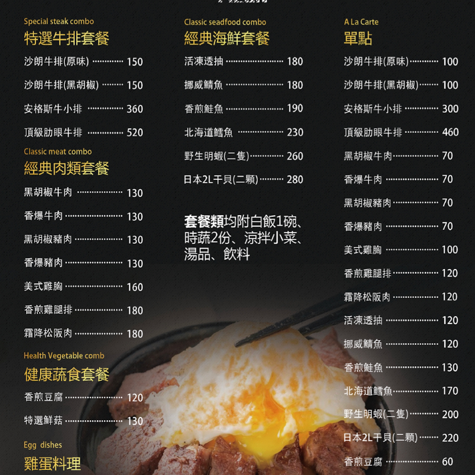 白飯 牛排 青菜 每項都是單點