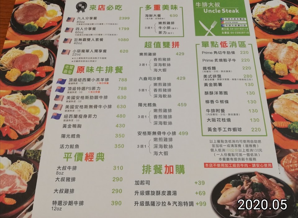 2024最新在地推薦餐廳的菜單_牛排大叔-南屯永春店的菜單、圖片
