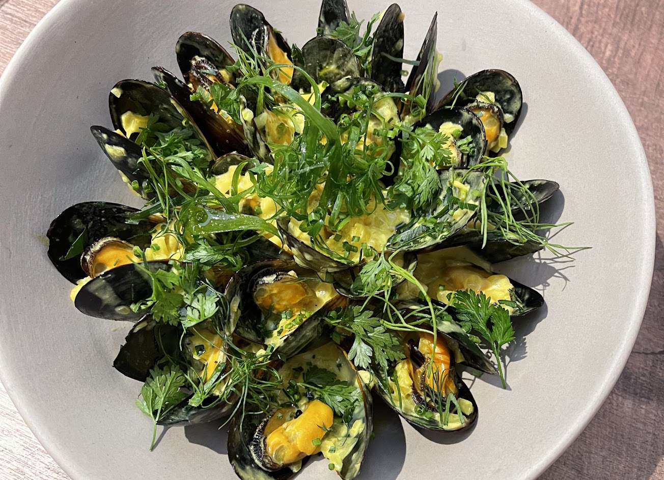 2.薑黃奶香淡菜-清新爽口,有別於一般以蒜頭為基底的料理方式,而是以洋蔥與橙皮帶出甜味與香氣