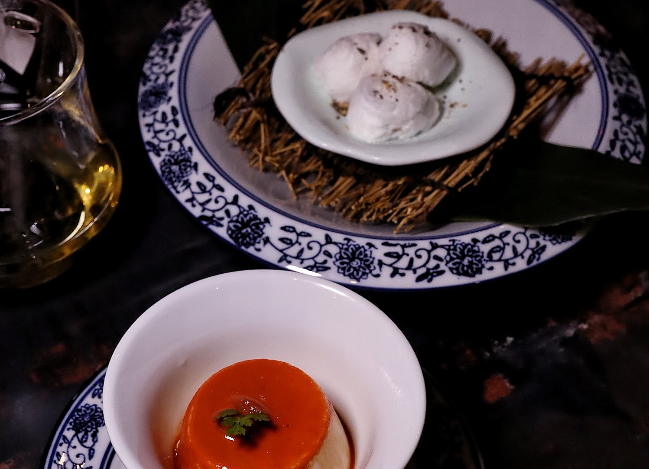 ▫️南投梅汁與金萱茶調製,酸甜爽口又解膩。凝脂點漆這道充滿國風的甜點詩情畫意,滑嫩的奶酪上淋上很特別的枸杞醬, 滋甜順口。