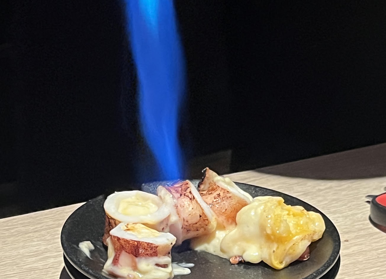 烤到透抽的時候 切的有點打開 桌邊沒有剪刀可以自己剪小。入口的時候覺得有點腥 (一開始以為自己沒烤熟 又放下去烤一陣子,但還是難以入口)後來 我們烤完幾乎整隻都沒吃。