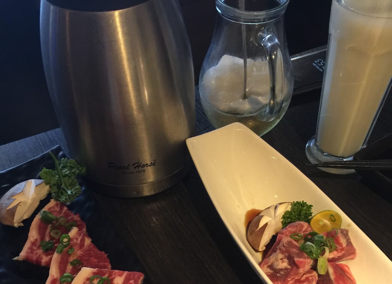 套餐牛肉大多屬於軟嫩油脂多的部位,會比較油膩,但都有附很好喝的解膩果醋。肉量很足夠,不用擔心吃不飽。