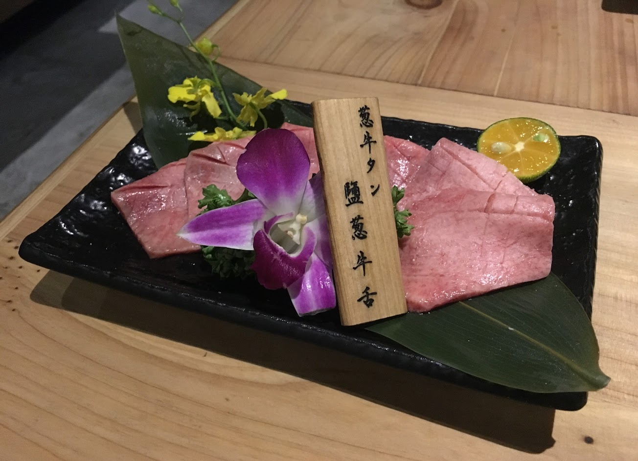 板腱以單面烤,並在肉片上面加了蒜泥,大約3分熟就捲起來擺盤!! 這也是考驗幫烤的服務人員技術,畢竟過熟就無法品嘗出它的鮮嫩多汁、微妙精緻的口感。