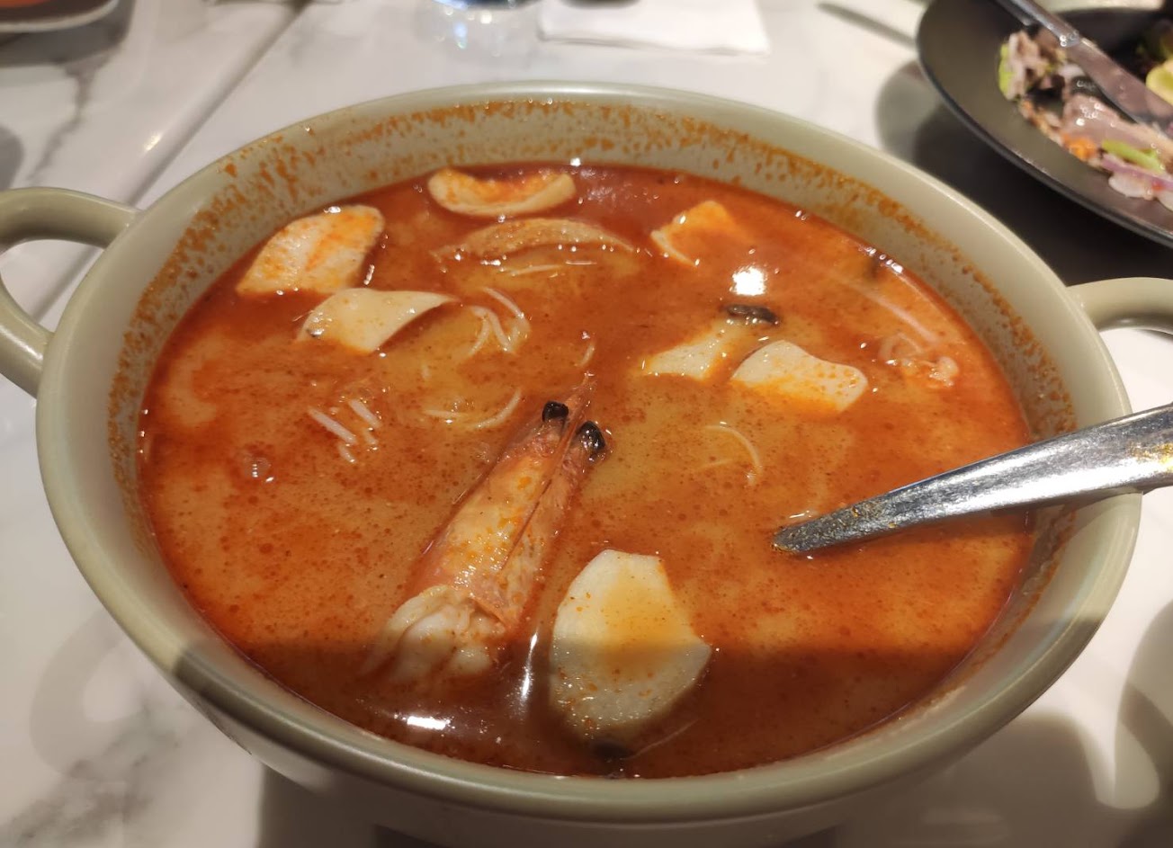 口味道地、服務良好、好停車、裝潢不錯、位置舒適。口味偏重不配飯單吃一些菜色(如綠咖喱雞、蝦醬空心菜)會覺得比較重鹹,唯一自己比較不喜歡的點,同伴也這麼覺得,但口味是好吃的!清蒸鱸魚很清爽但魚沒有很嫩,涼拌木瓜絲也算清爽的一道,泰國香米白飯無限續點很不錯。同伴怕辣我愛辣另外請他們送魚露辣椒(免費),還外加辣椒粉和糖可自行再調整辣度,很不錯的服務。