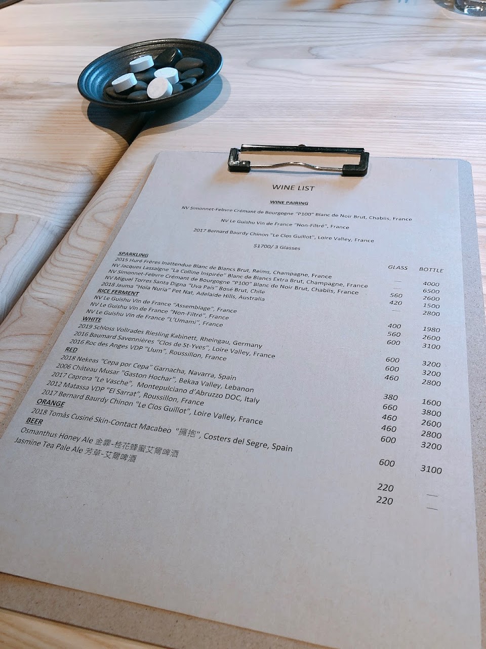 1. 酒(或無酒精)的Pairing, 真的很糟,不如選幾個代表性的酒款佐餐,以我們四人共$6,400的酒資,應該有機會選到還可以的。這樣一來酒自己選的選到難喝的也比較甘願,再不然拜託讓我選可樂吧…JL配的這個佐餐酒真的是0分。