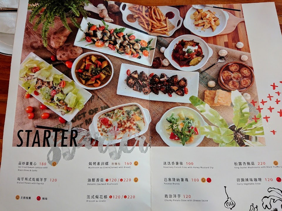 建議點奶類焗烤或燉飯比較不會雷,想來吃的,蔬食本身缺乏蛋白質、精緻澱粉居多,小孩子吃身體健康的還好,老人家就算了。