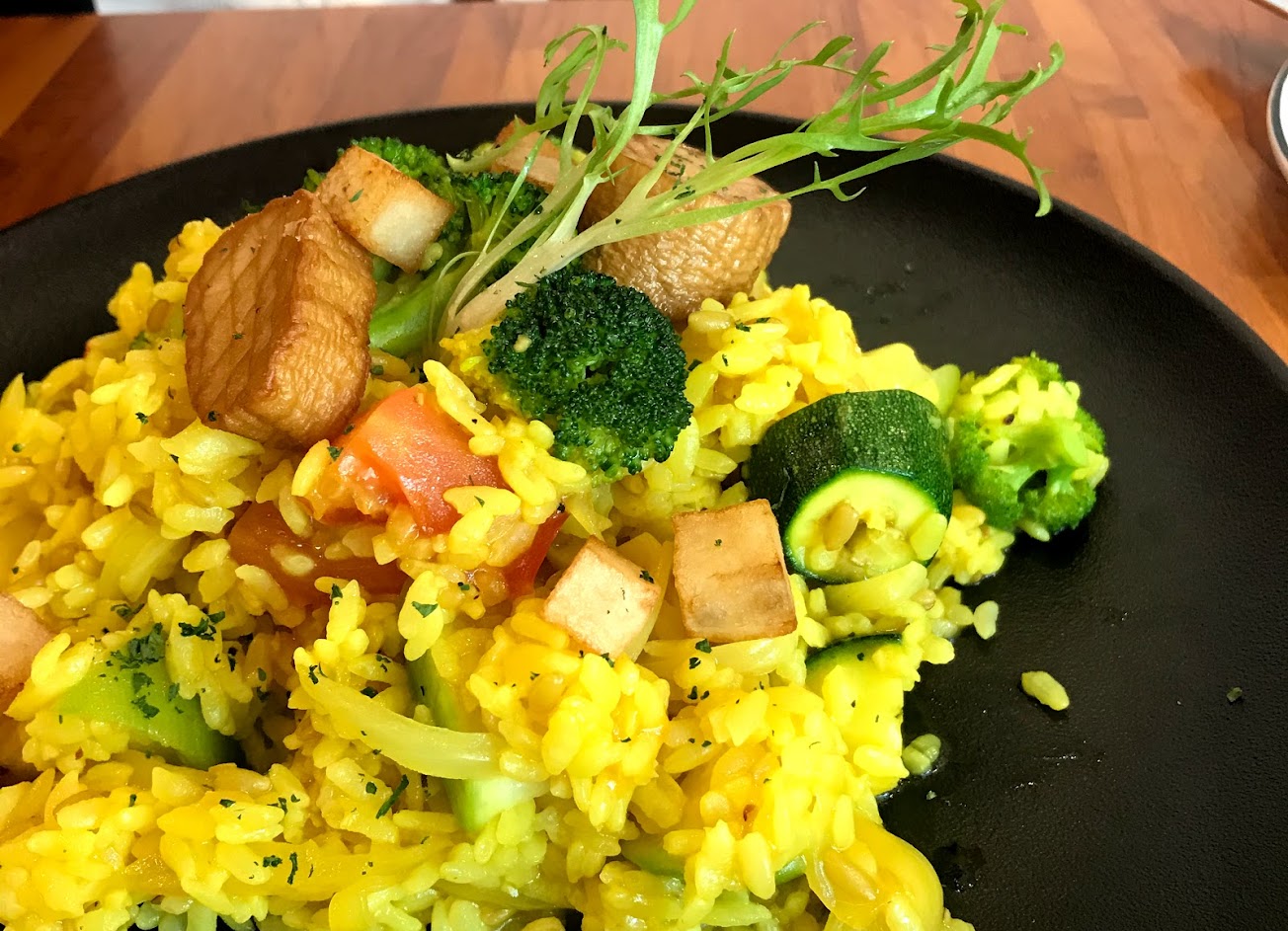 ?西班牙燉飯 – 180元用杏鮑菇和節瓜取代原本西班牙燉飯的海鮮,味道稍淡了一些但非常爽口!)