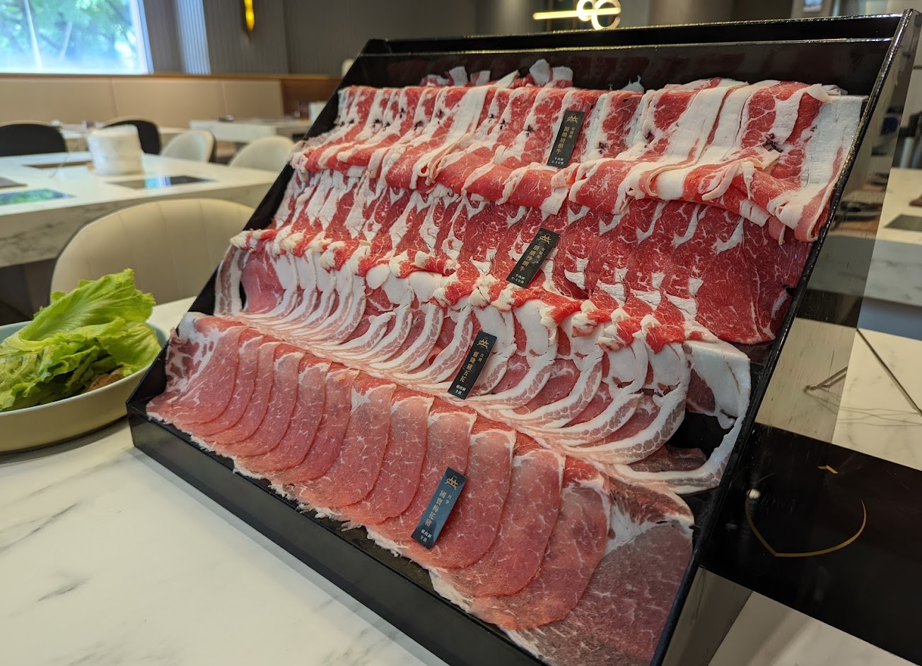 豬肉牛肉都非常乾柴,很失望,之前吃過豐原店的品質沒有這麼差啊,海鮮部分也有有點腥味,但還好沒有腸胃不適的問題。自助吧雖然偏少樣但蔬菜都很新鮮翠綠,煮完很鮮甜,服務人員很親切,但肉品的部分真的有很大的改善空間。