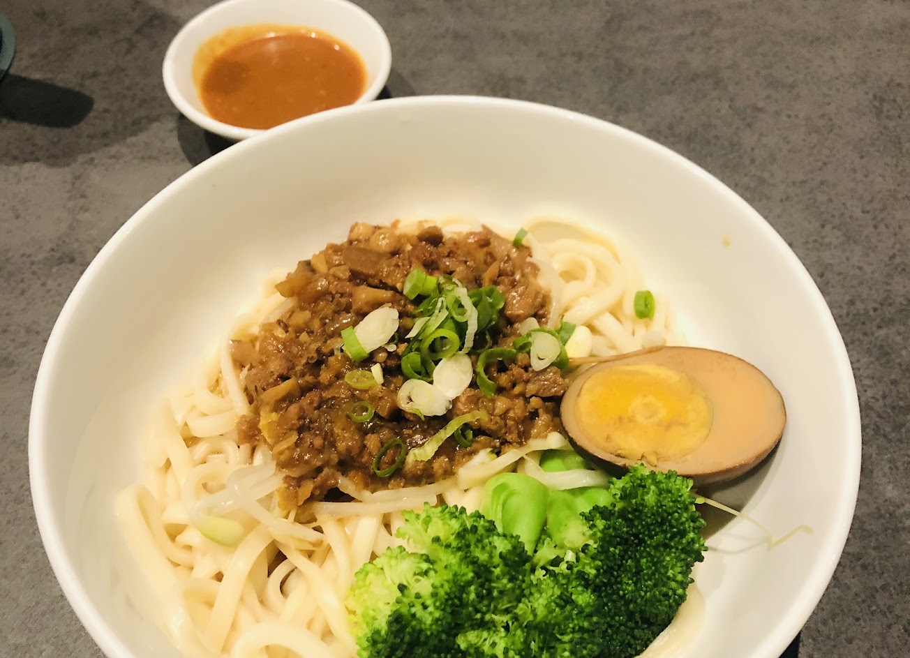 功夫麵的麵體Q彈好吃,搭配辣醬超對味