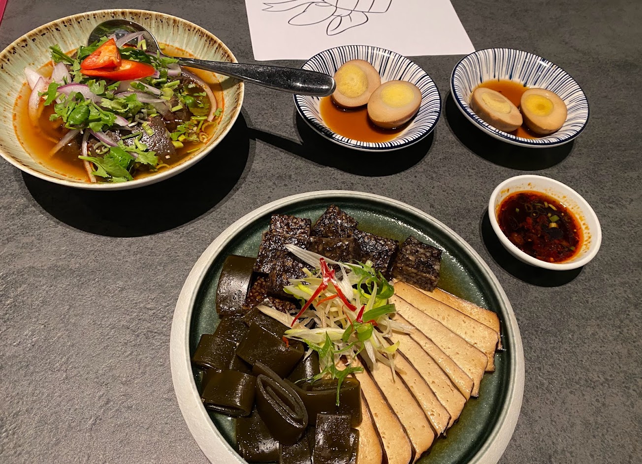 餐點方面只點了部份,乾麵、蘿蔔糕、滷味都不錯,熱泡茶也蠻耐泡的,回沖好幾回