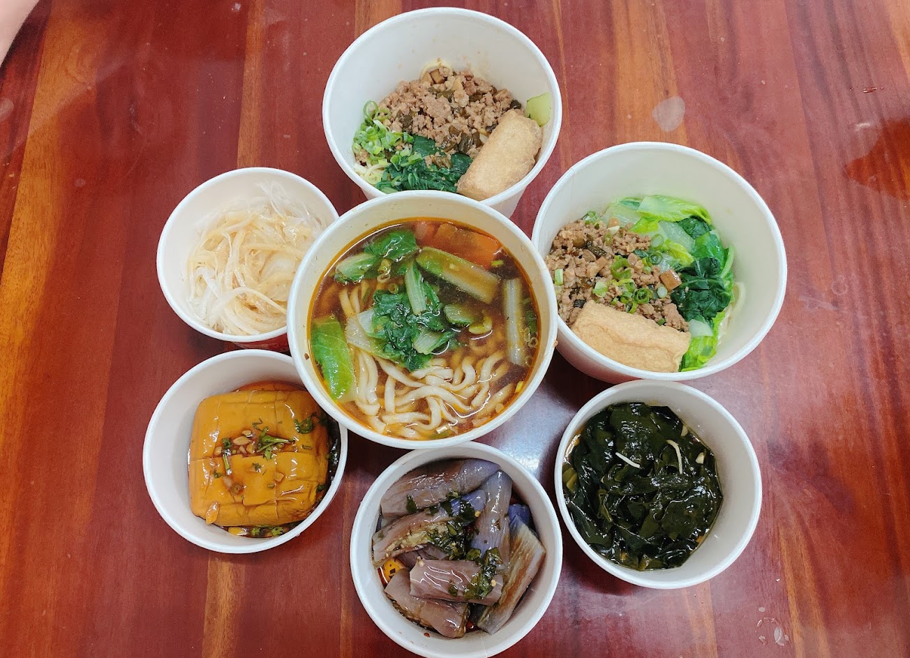 香菇肉燥飯, 蔬菜鮮蚌麵, 塔香茄子, 滷牛腱, 家常雜醬麵, 每日家常湯 苦瓜湯, 春梅紅燒牛肉麵