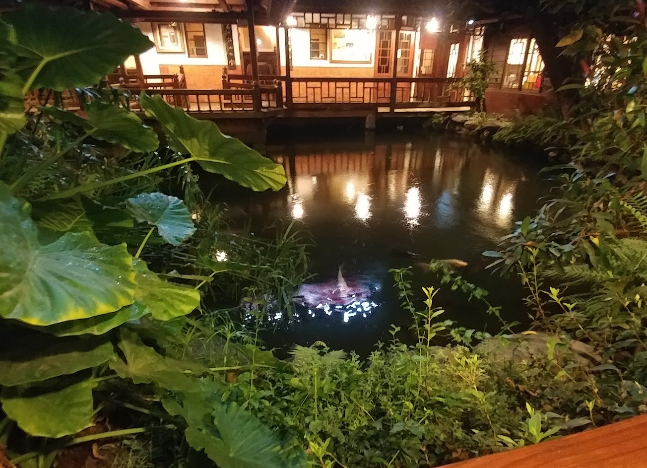 70年代曾經是日本時代台中洲的高官將軍的指輝所,完全用檜木建造、日本高官將軍府樣式搬至台灣建造,歴經70年代仍然屹立不搖,豐華依然尚存。使我思潮疊疊覆湧,劃過其繁華閃耀、車水馬龍、川流不息的時代。看著小橋流水、思情畫意高雅的走廊、寬敞高雅的招待所。今天能來此團聚餐敘,真是美好無限。