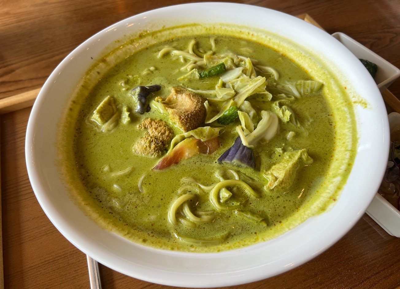 第一次吃熱浪島,南洋蔬食料理好吃,叻沙麵湯頭很濃郁份量也夠,只是剛出餐真的很燙,第一口吃的茄子差點被燙死,但個人很愛這味道?