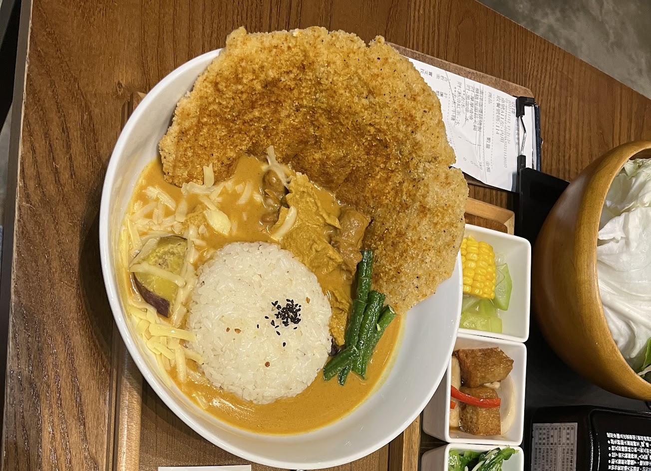 雖然是素食但非常好吃,南洋料理風味也非常到位到吃。份量相當夠,而且套餐還有大杯飲料和甜品,吃的非常滿足!下午茶時間和晚餐時間供應的餐點不一樣,17:00後就可以供應晚餐了。