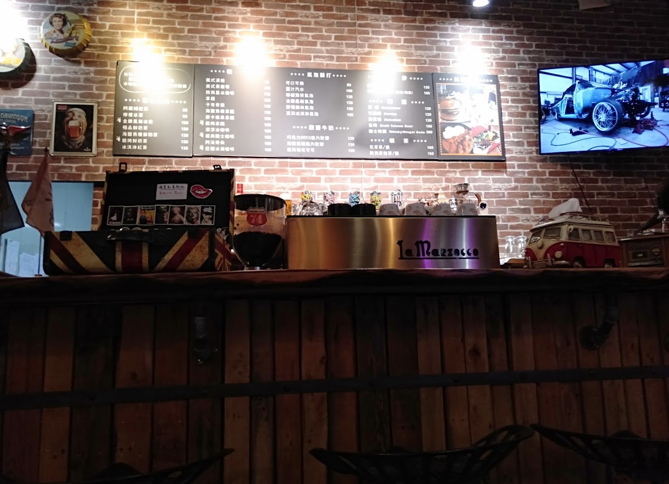騎士必須朝聖的地方!店裡琳瑯滿目美式風格佈置與裝潢,播著80年代英文老歌,坐著喝咖啡還可以一直看到外頭各式改裝檔車不斷來訪,台灣少數有鮮明特色有文化的咖啡廳!必推!