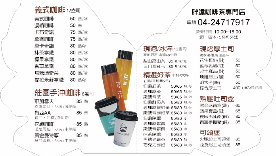 2024最新在地推薦餐廳的菜單_胖達咖啡茶専門店-總店的菜單、圖片