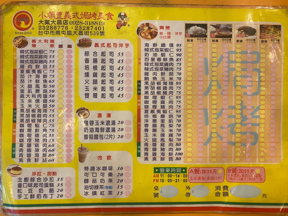 2024最新在地推薦餐廳的菜單_小順豐義式美食(大業大昌店)的菜單、圖片