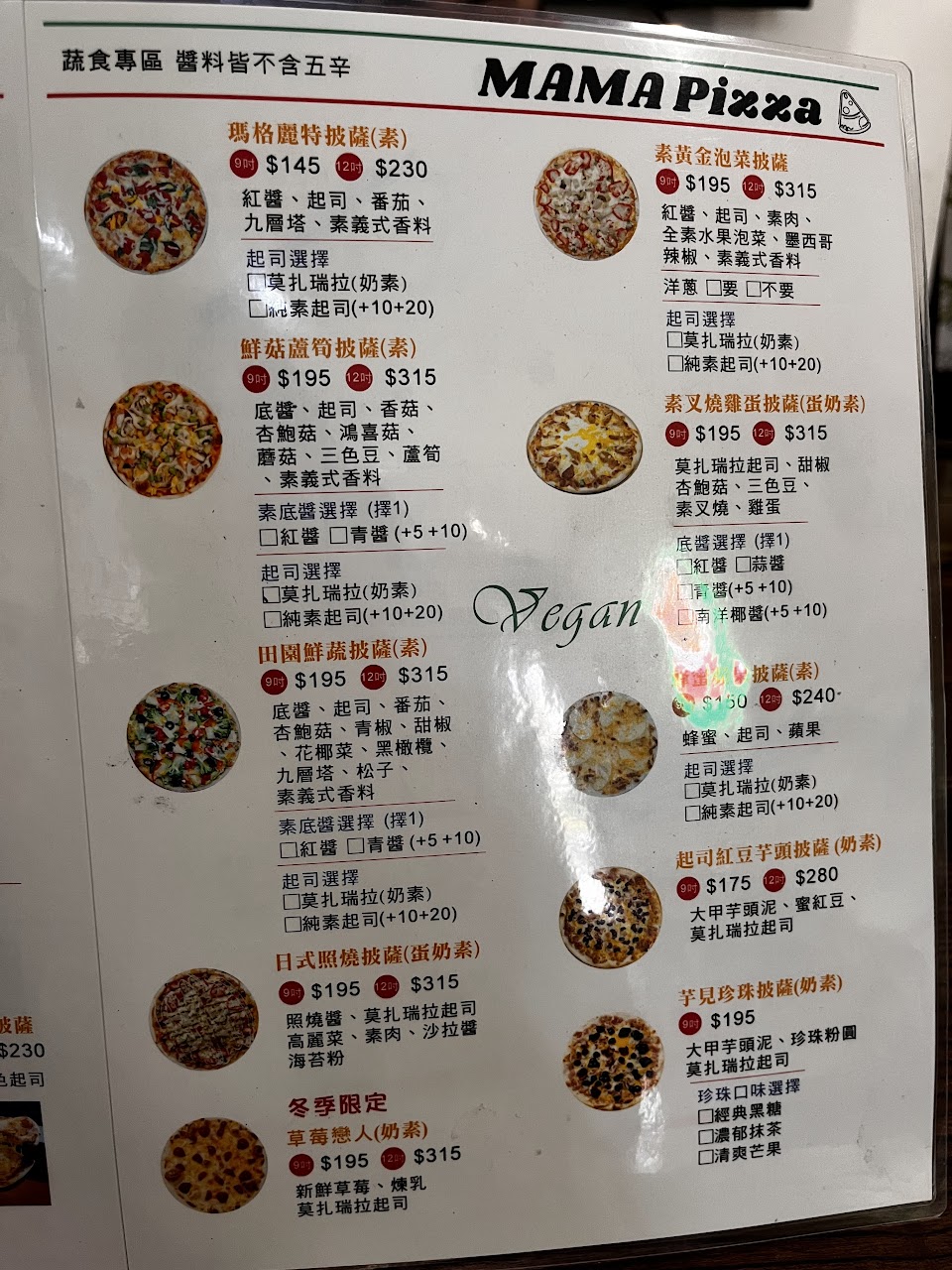 Pizza 薄皮、口味多種選擇、素食好選擇☺️