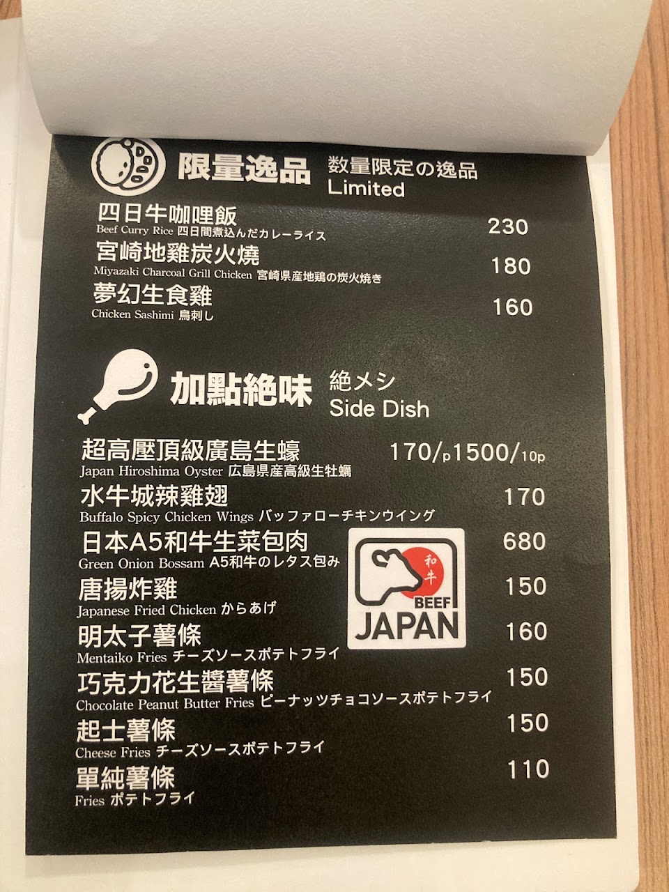 牛舍炭火漢堡150g, 經典牛舍特製醬漢堡排, 四日牛咖哩飯