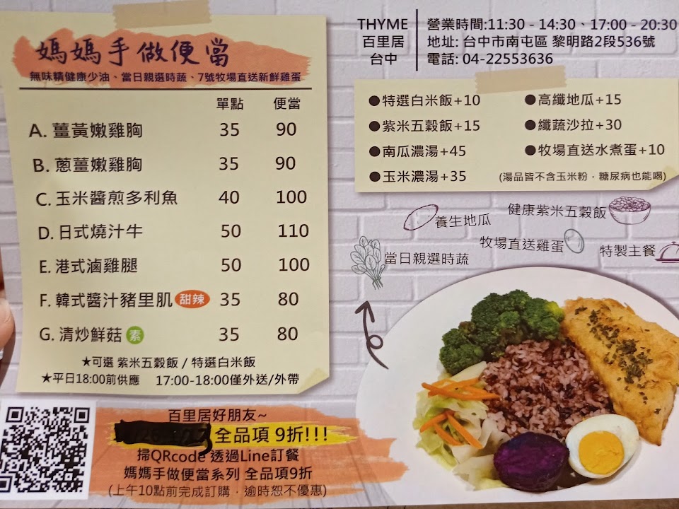 2024最新在地推薦餐廳的菜單_THYME 百里居 台中 港式 義式的菜單、圖片