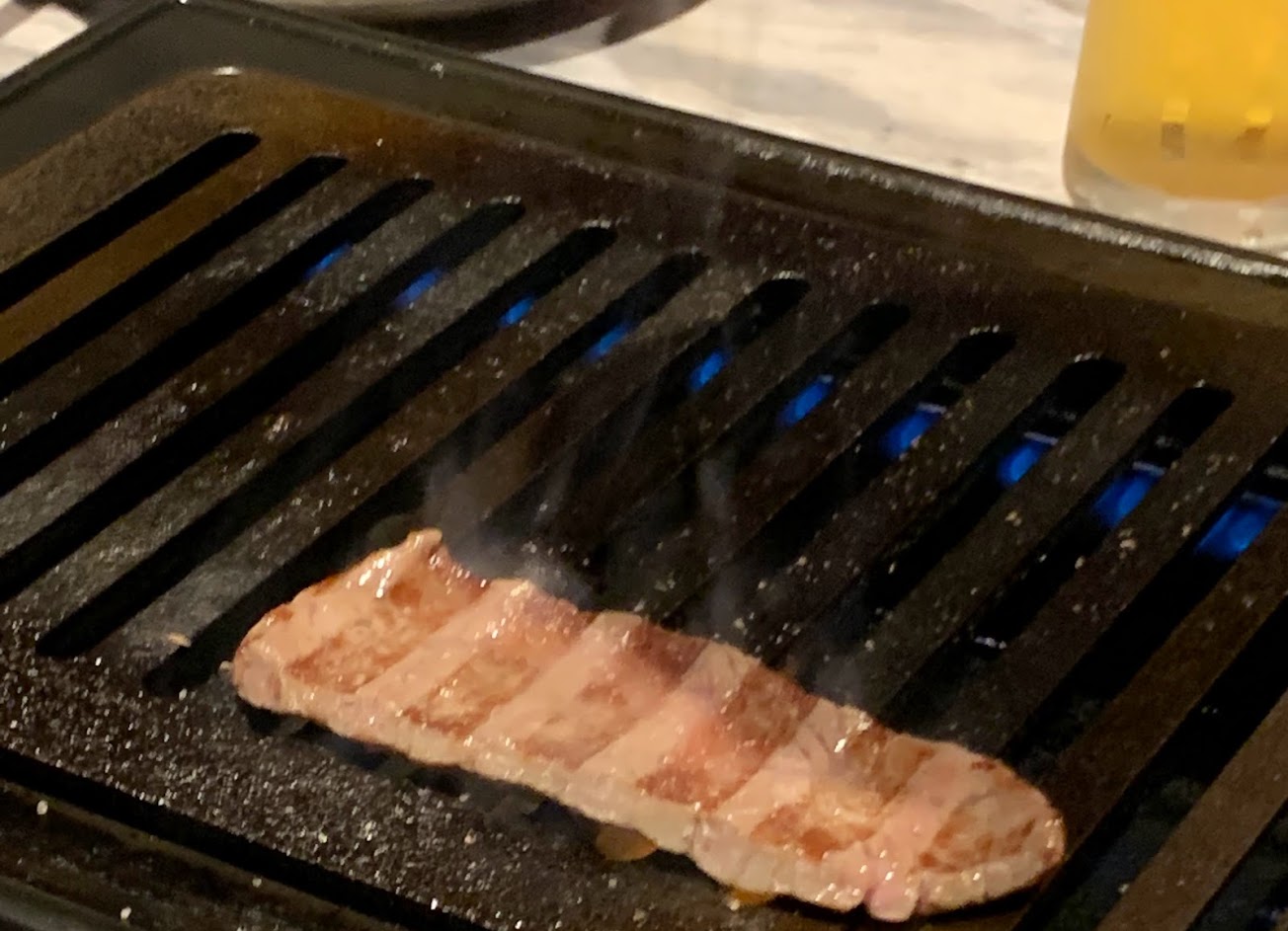 餐點:副餐、前菜及一品都不錯。肉質整體OK,任性日本套餐的牛舌有驚艷。烤肉方式是用牛油在銅盤先抹再放肉的方式,偏油。