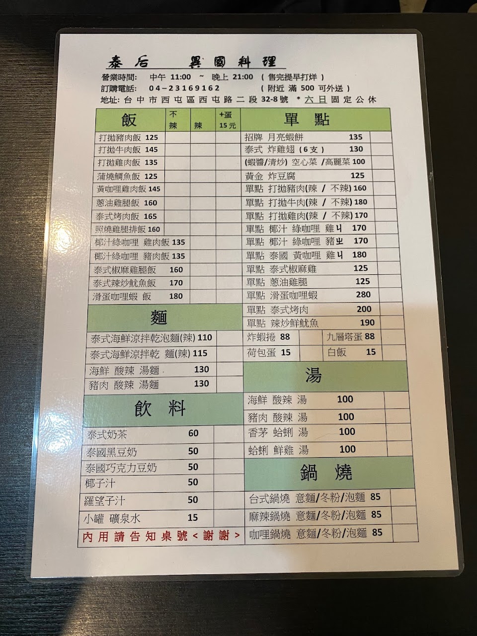 2024最新在地推薦餐廳的菜單_泰后 異國料理風味簡餐的菜單、圖片