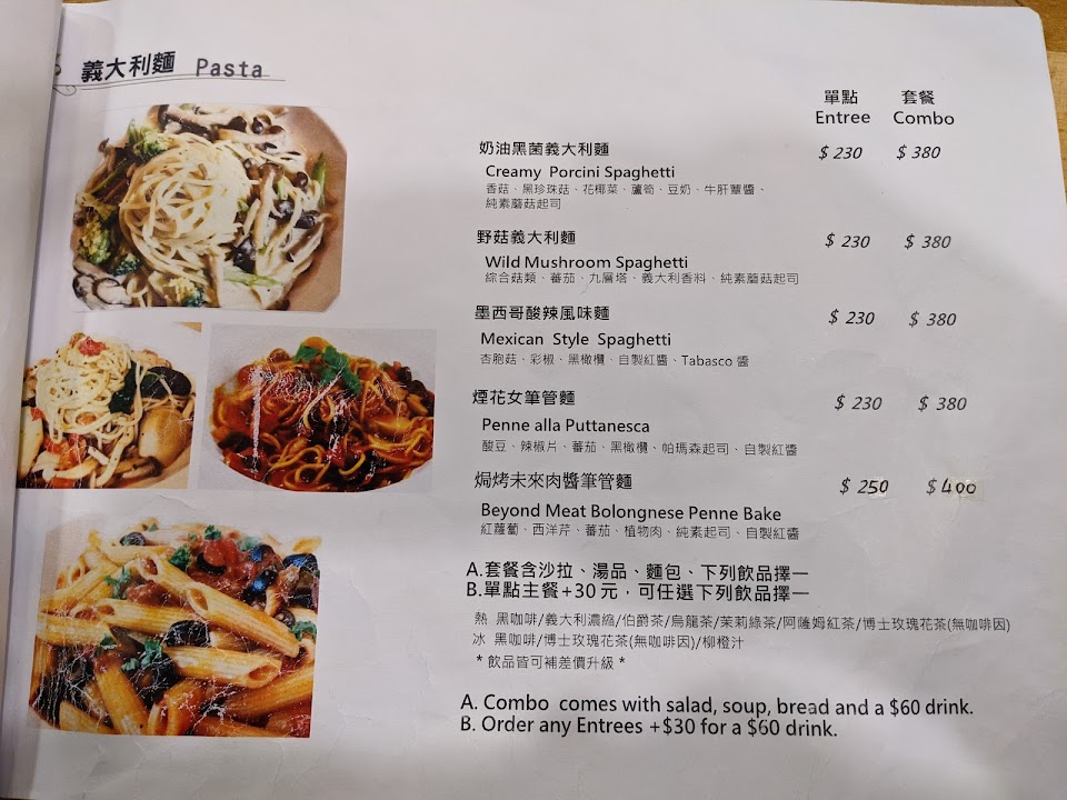 第一次光顧,是家素食餐廳。今天點了野菇義大利麵、青醬燉飯和松露野菇烙餅,烙餅非常好吃,明明不餓,還是吃光光!