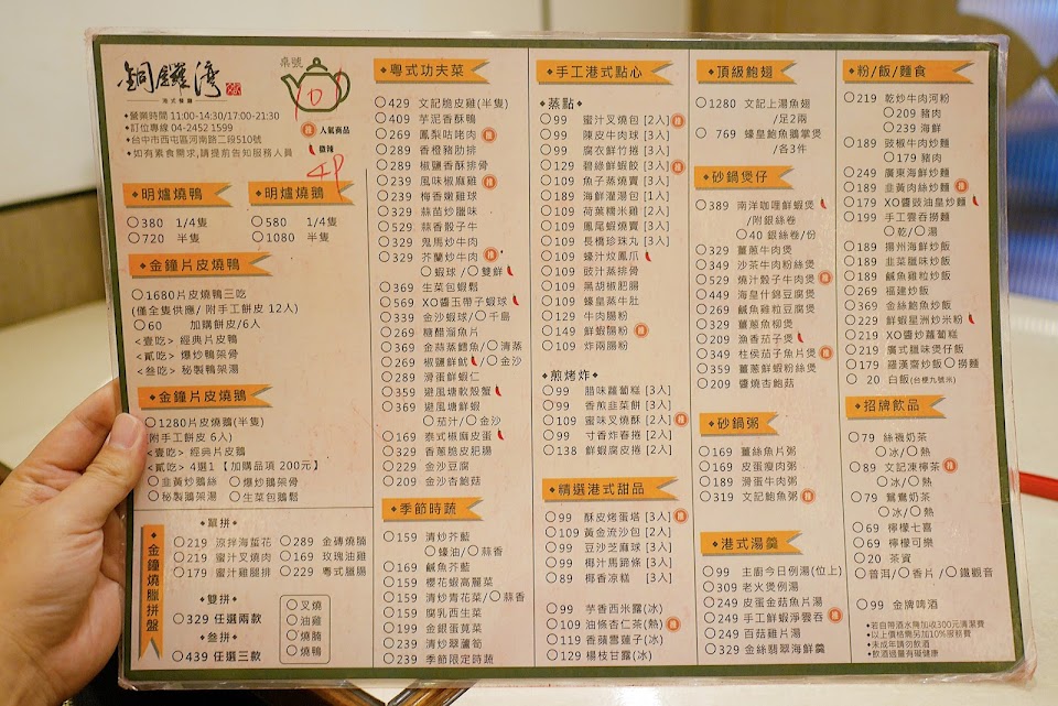 應該是台中最好的港式點心了,這次是我第三次造訪,距上次已經是一年了,不過,菜單上的煎蘿蔔糕、魚子燒賣、牛肉腸粉如同一年前一樣優質;菜單上多了一些新品項,其中一個是龍鬚生菜捲,用米粉做出酥脆口感且用蘿美生菜包著,吃起來類似蝦鬆的味道,很有創意;凍檸茶依舊茶香滿滿帶著檸檬香氣,雖然臨時不小心端上了冷的版本,店員很客氣&關心我是不是要再換一杯、或者把冰塊去掉,對客人的服務態度真的很敬業!