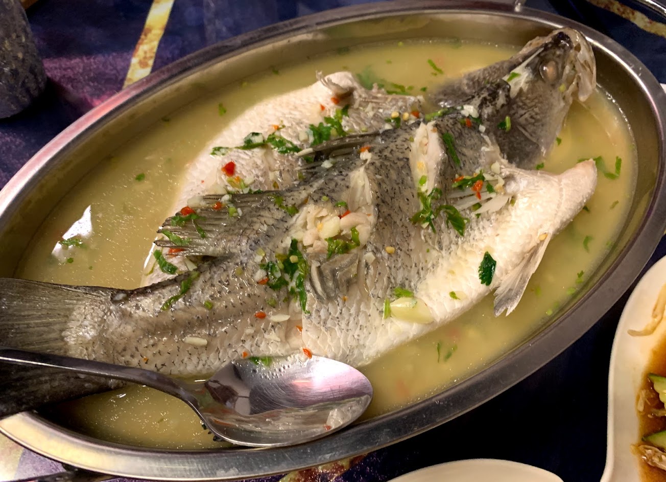 清蒸泰式檸檬魚 以前去吃泰式料理點檸檬魚常常都只有半隻 結果端上來的時候有嚇到因為竟然是整隻的! 這道的味道比較淡一點點 但酸味跟辣味都有 如果喜歡重口味的話可以跟店家說一下 魚很新鮮 肉質也很細緻 非常好吃