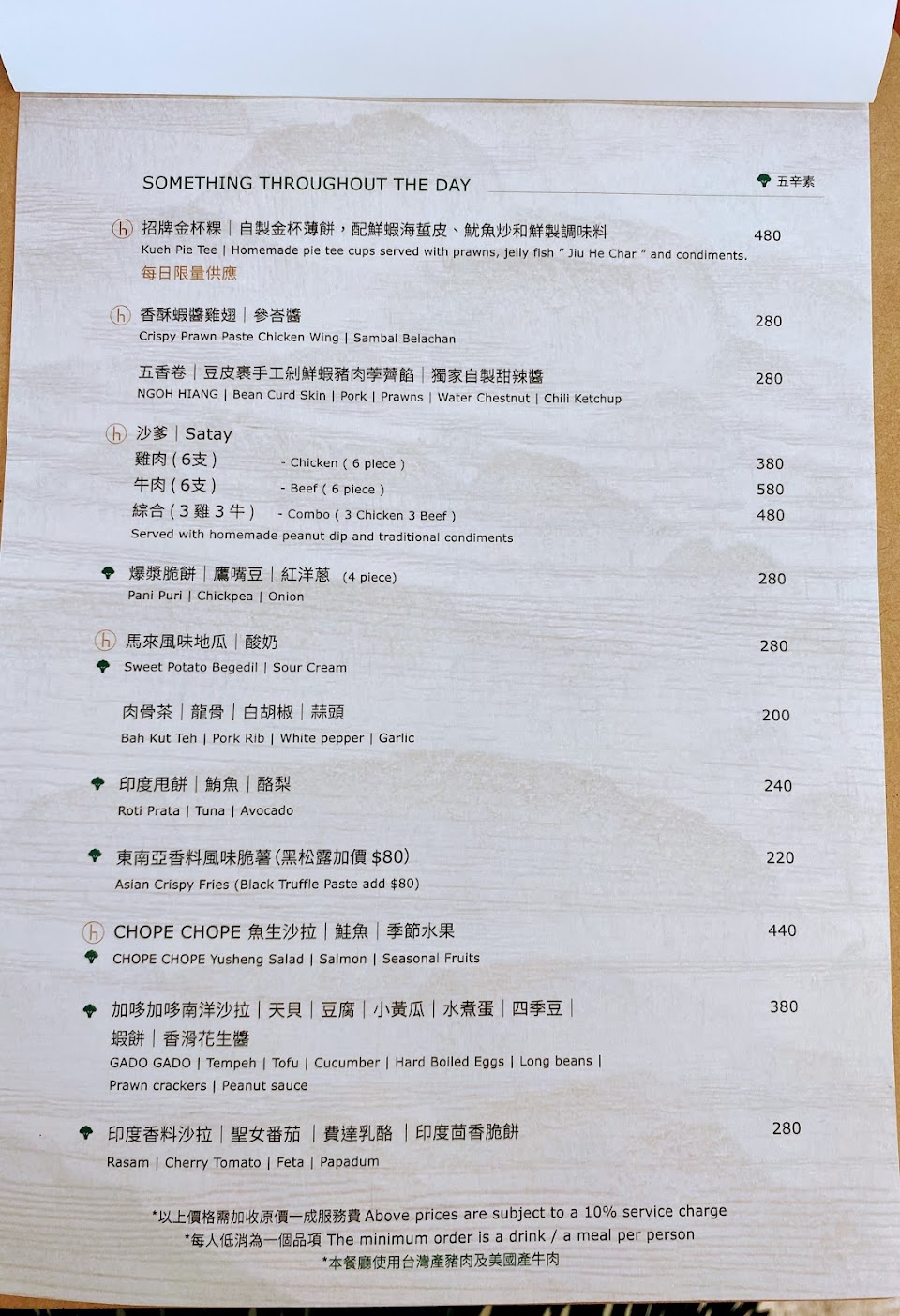 吃了好幾次,本來是新加坡料理,覺得蠻有特色!但是今天去吃,換了菜單!變成義式料理,義大利麵的水準極差,感覺是200-300元的簡餐型義大利麵!點了1780元的牛小排更糟!擺盤很廉價,配菜很兩光,更要命的是牛肉品質賣這個價錢真是暈倒!以後不會再去吃了!