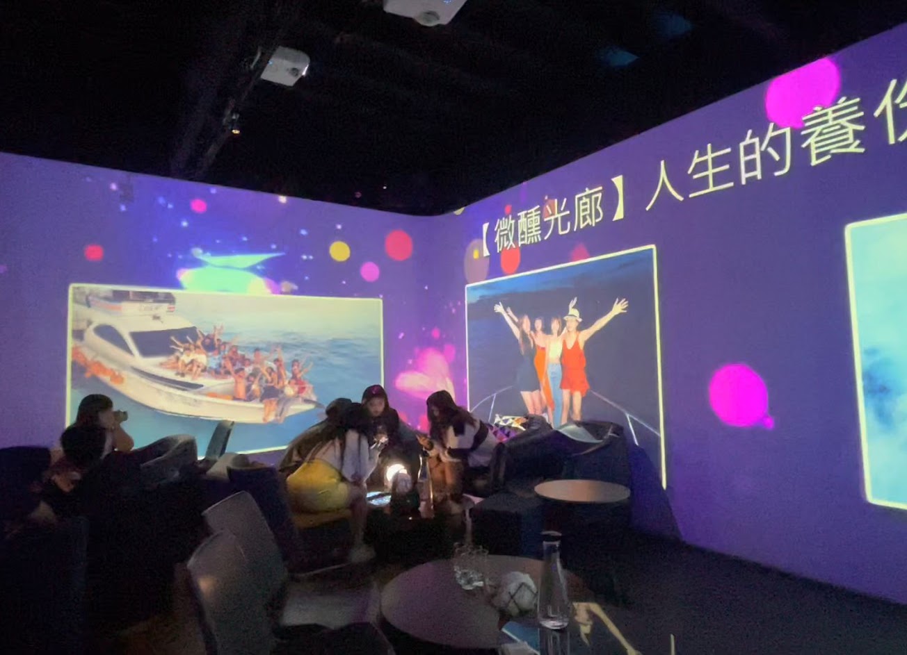 有時候想要享用美酒佳餚放鬆 一定要好好找個很有氣氛的地方! 不管是聚餐、生日、約會、求婚 來這兒絕對浪漫一百分?? 巨型屏幕的沉浸式投影體驗 更是讓人覺得好有意境! 隨著更換的投影彷彿置身其中 真的震撼又浪漫 值得來微醺光廊好好享受!