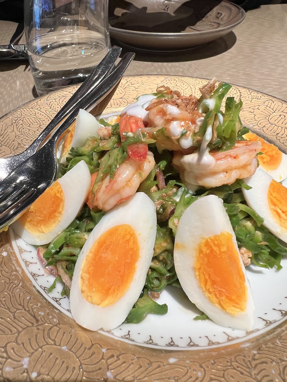 楊桃豆就是豆角 口感是更脆的四季豆 處理的很好 調味是酸甜堅果 雖然水煮蛋的出現有些不知所云(感覺邊緣很空多給幾隻蝦啊)
